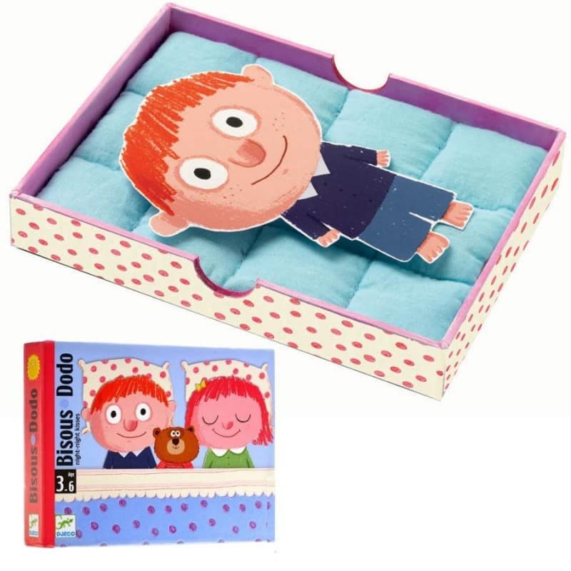 Bisous Dodo de Djeco es más que un juego: es un ritual afectuoso para irse a dormir. Los niños deben reunir los elementos necesarios para acostar a su personaje—la almohada, la manta y su peluche—antes de darle besitos y desearle buenas noches.