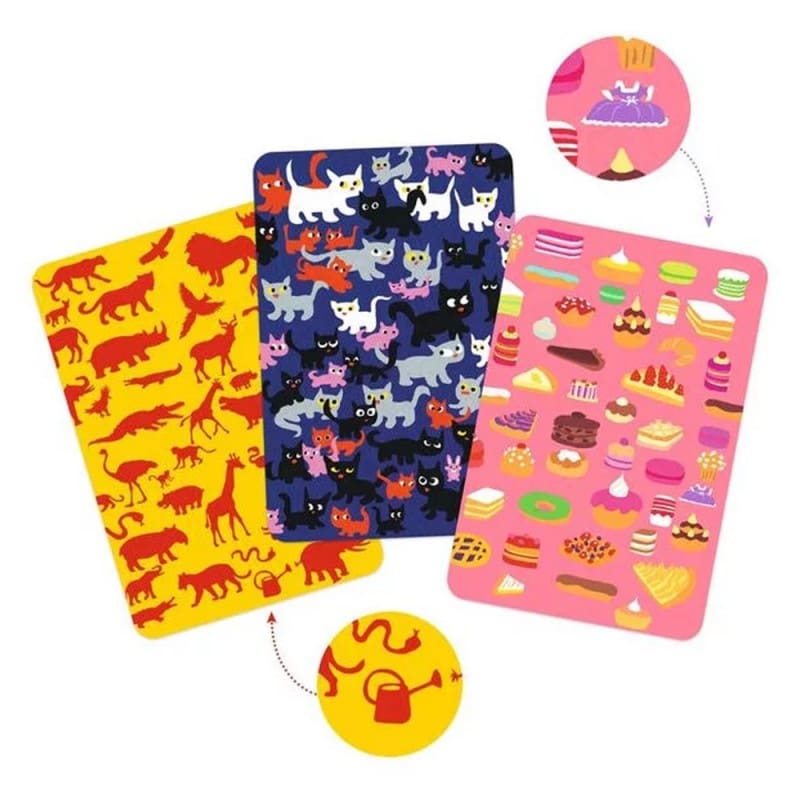Mysterix de Djeco invita a los niños a agudizar su vista y su mente. Cada carta muestra un conjunto de objetos o escenas, pero hay un detalle que no encaja… ¿Quién será el primero en encontrarlo?
