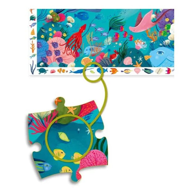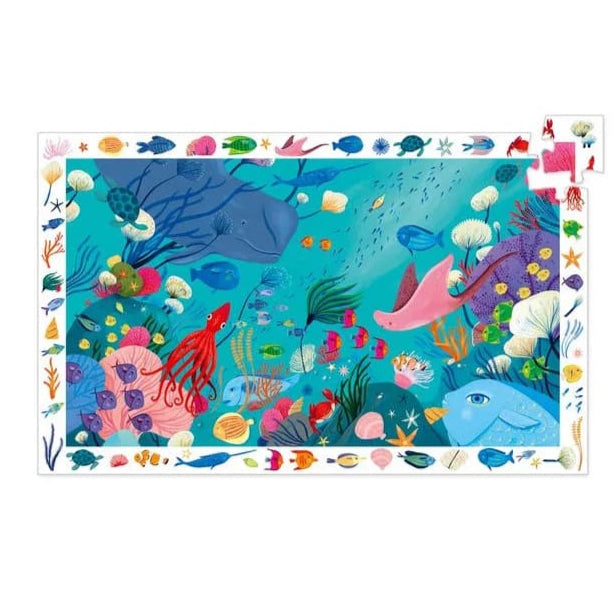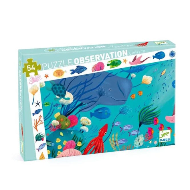 Sumérgete en las profundidades del océano con el puzzle de observación "Mundo submarino" de Djeco, un rompecabezas educativo de 54 piezas perfecto para niños a partir de 4 años. Este juego permite explorar la vida marina y sus criaturas a través de ilustraciones llenas de color y detalles.